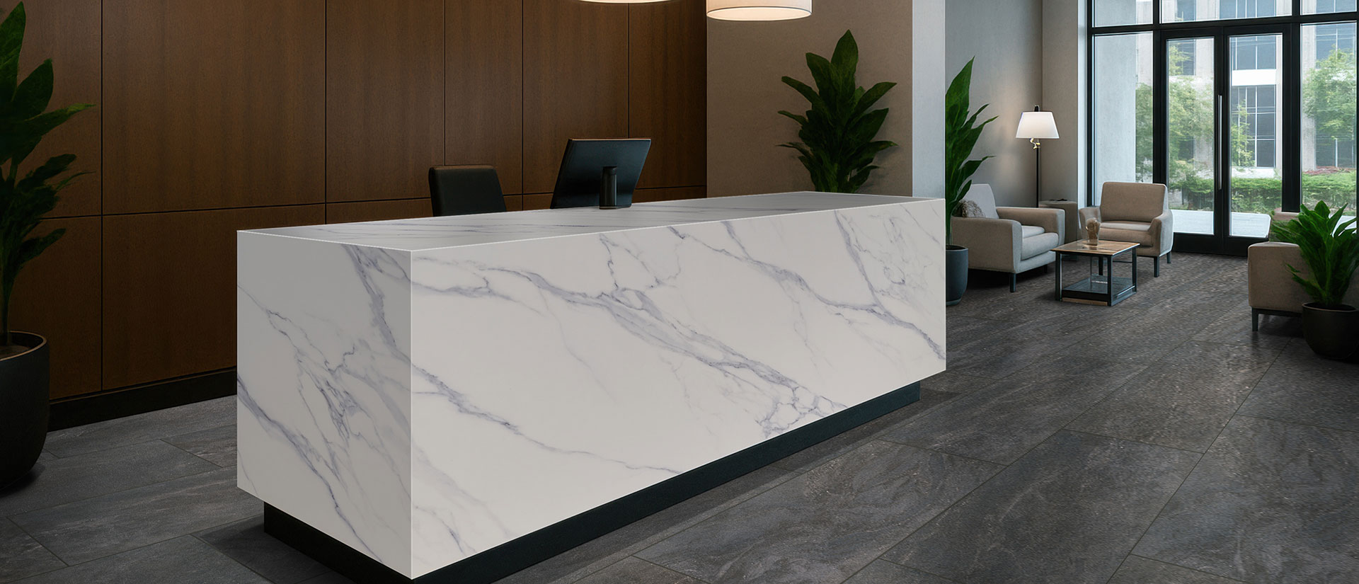 Indulge in the unparalleled elegance of Calacatta Anavaâ„¢, a crown jewel within our Q+ Collection. Featuring a mesmerizing gray Calacatta vein structure, this masterpiece is a testament to the fusion of cutting-edge technology and timeless design. Thanks to the revolutionary High Definition Inkjet print technology, marble patterns are intricately printed onto a quartz and recycled glass base, achieving the look and feel of natural marble with unprecedented detail and realism. Calacatta Anavaâ„¢ effortlessly marries the enduring benefits of traditional quartz with a new standard of sophistication. In an era defined by pushing boundaries, our Q+ Collection stands as a symbol of unwavering commitment to elevating surface design to unprecedented heights of beauty and refinement. Redefine luxury in your space with Calacatta Anavaâ„¢, where every detail tells a story of innovation and enduring beauty.