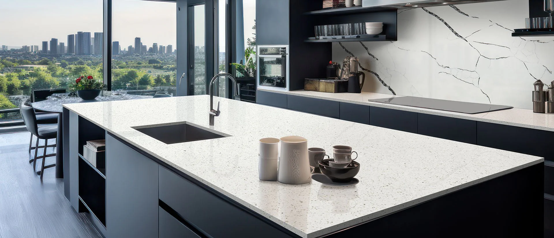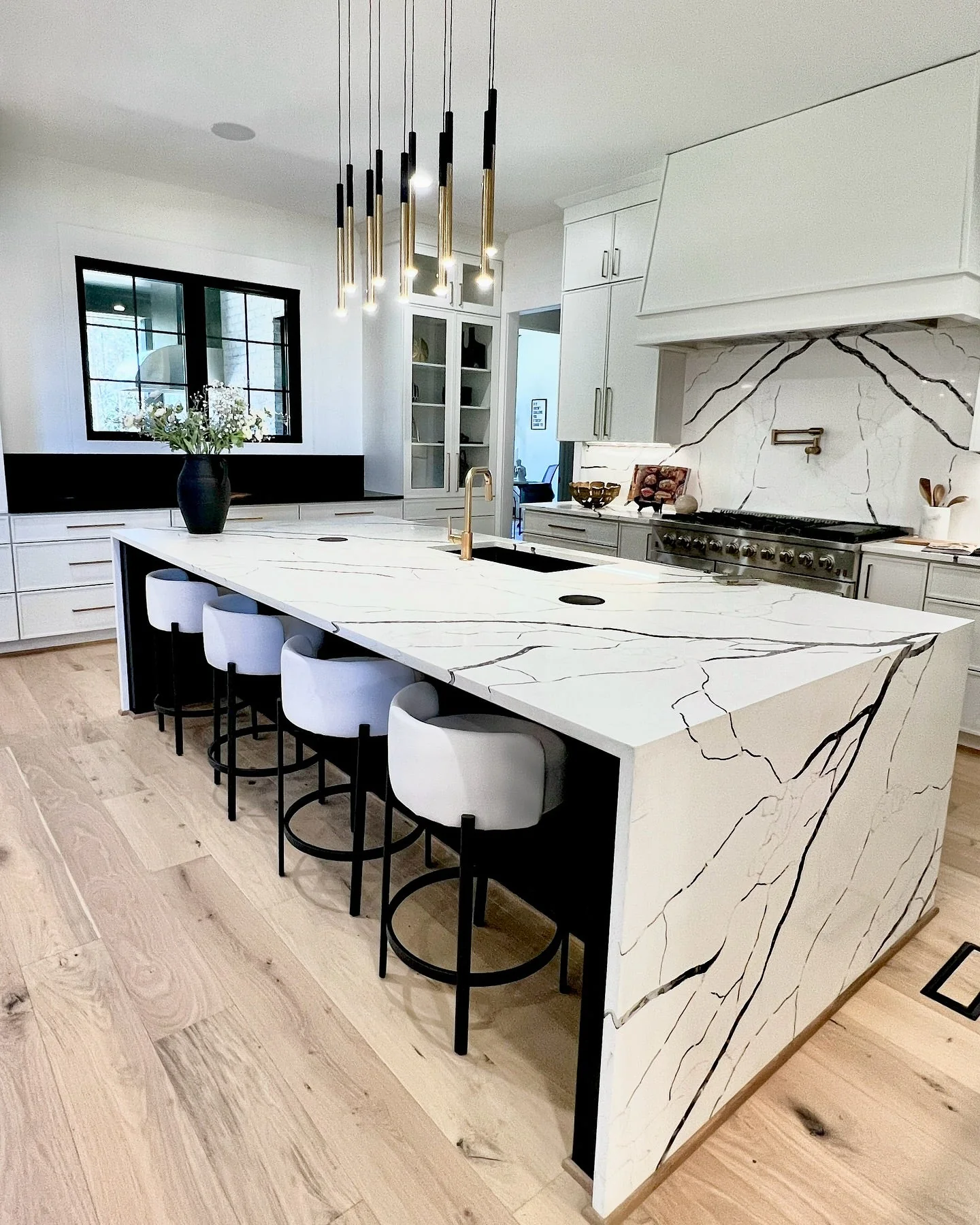 Add elegance and drama to a room with Calacatta Laza Night® Quartz. The cool, white background is interwoven with bold charcoal veining to enhance the natural marble look and bring a modern touch to kitchen islands, backsplashes, countertops, and accent walls. Not just beautiful, Calacatta Laza Night® is incredibly high-performing, standing up against scratches, chips, and stains. It also never needs sealing, polishing, or reconditioning.