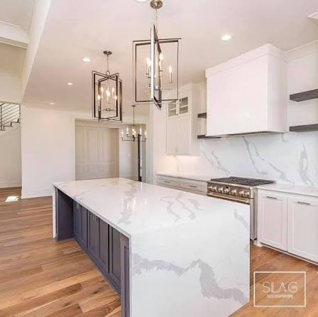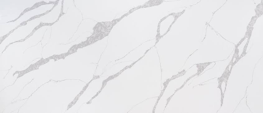Showcasing dramatic grey veining throughout the slab, this quartz provides the most authentic marble look.