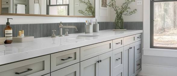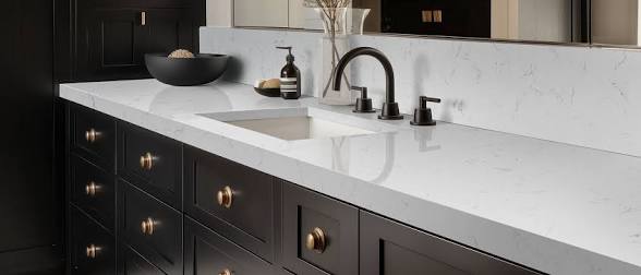 This rich quartz captures the beauty of marble with a creamy white base for a fresh and luxurious feel.