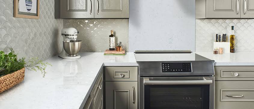 Featuring delicate light sterling and dove gray veins, this stunning quartz delivers a refined marble aesthetic.