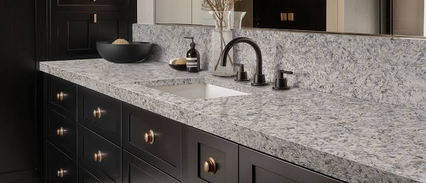 Inspired by natural marble, this quartz showcases dramatic movement with subtle white and gray tones.