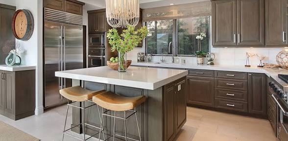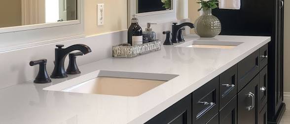 This quartz presents a snowy white background suitable for design styles from traditional to modern.