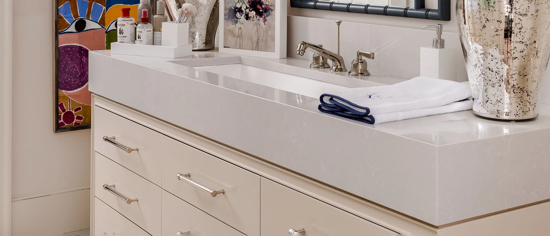 Vena Carbona Quartz is beautifully neutral quartz featuring a field of dove gray accented by subtle white veining for dimension and interest. Ideal for creating beautiful quartz countertops, backsplashes, and wall accent projects in commercial and residential properties, the cool gray nature of these slabs suits contemporary and modern designs.
